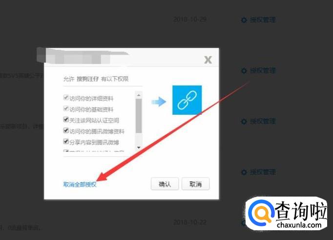 点击“授权管理”,打开一个弹框,选择“取消全部授权”即可,如图所示。