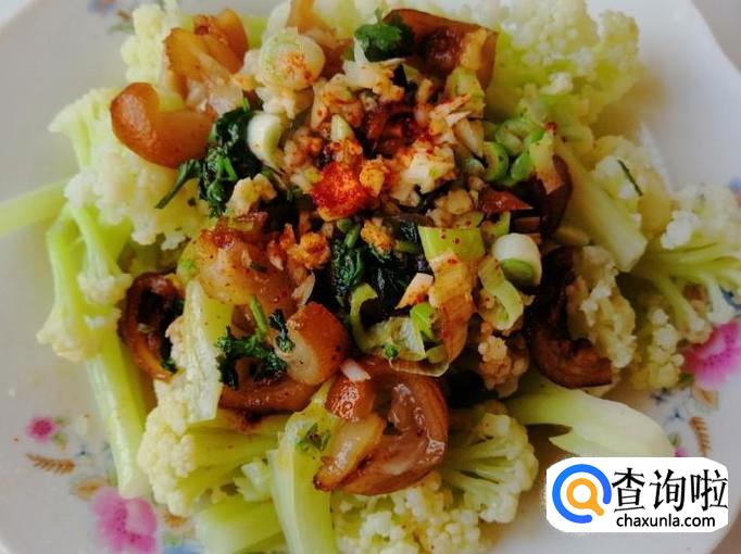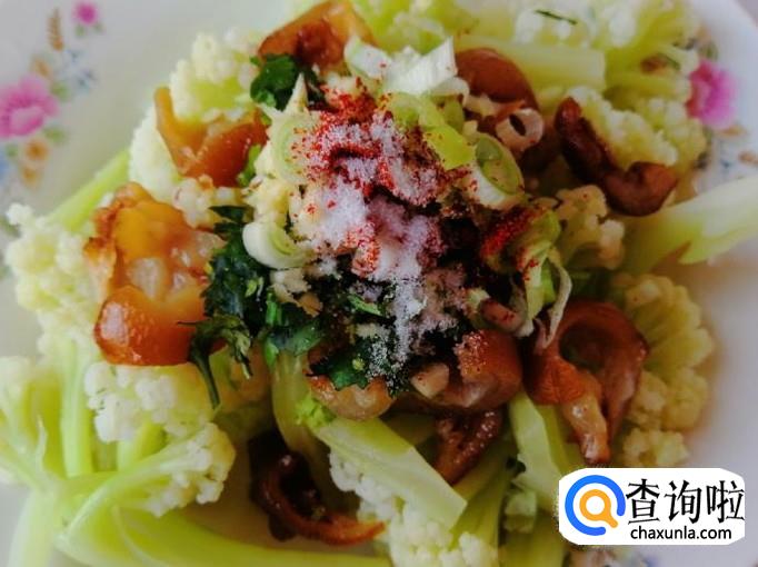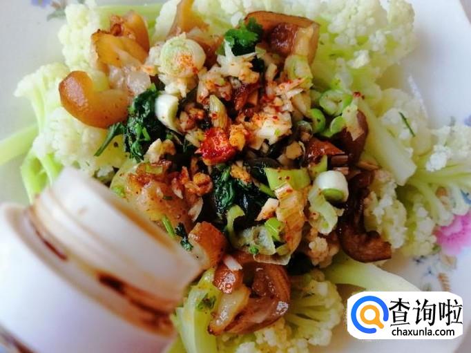 浇好热油后,分别放入适量生抽、香醋,喜欢香油和鸡精的可以加入适量,最后搅拌均匀就OK了,这样好吃营养的猪蹄筋拌菜花就做好了。