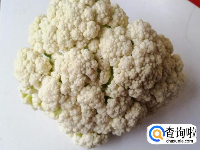 把菜花放入洗菜盆中,用清水洗净,然后用小刀把菜花切成大小一致的小朵,因为菜花杆熟的慢,最好用小刀从杆中间划一刀,这样比较容易煮熟,为了防止有农药残留,最好用盐水泡一会菜花。