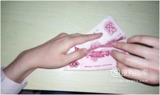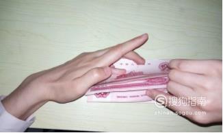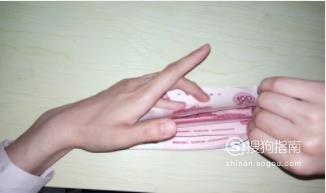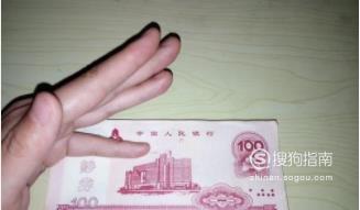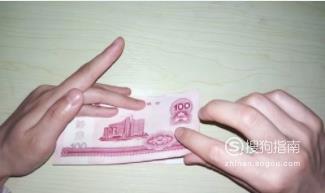 在滑动出第三张的空隙时,左手大拇指顺势抬起这三张钞票(右手食指、中指、无名指放开粘起的三张钞票),同时,左手食指接过钞票压在食指和中指之间