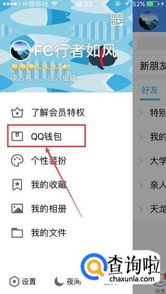 这时QQ主页的左侧会弹出隐藏功能栏,接着我们点击“QQ钱包”按键。