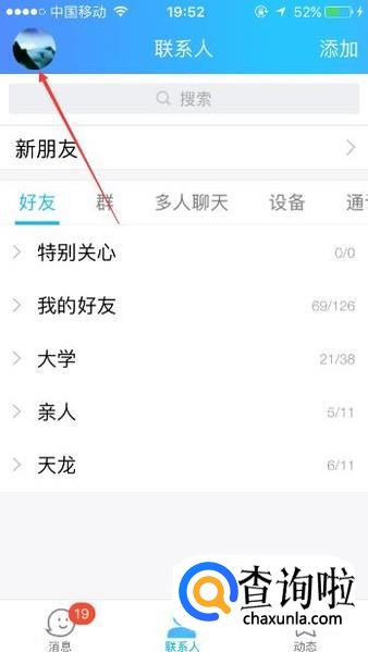 成功登录QQ账号后,接着点击左上角的QQ头像。