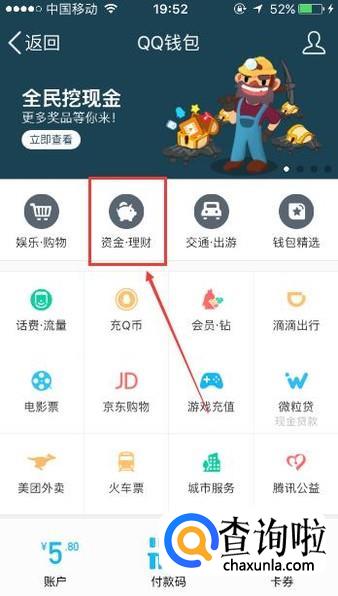 进入“QQ钱包”页面后,我们再点击此页面中的“资金理财”按键。