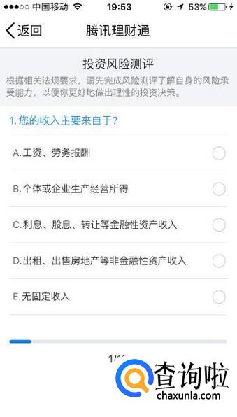然后在投资风险测评页面完成风险的测评,这样就能比较大概的知道自己属于哪一种投资类型了(测评结果可以借鉴)。