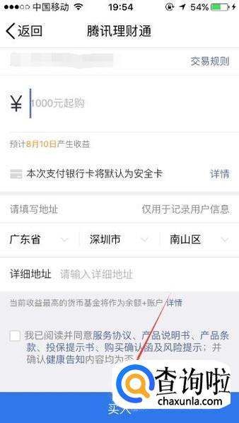接着我们在该基金购买页面输入购买的金额,再点击页面底部的“买入”按键,这样就有可能获得一定的收益了。