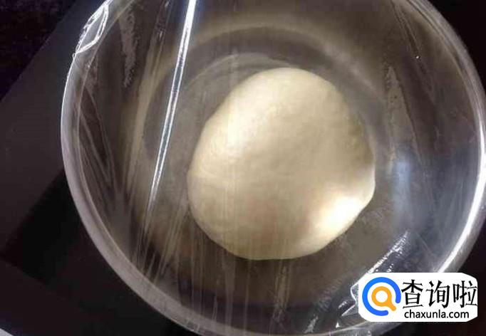 放进盆里,覆盖一层保鲜膜,室温下发酵约一小时,面团发胀至为原来2倍
