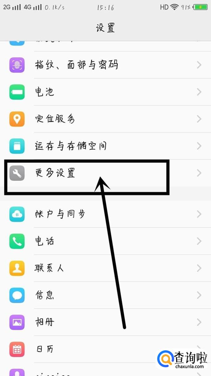在该页面向下滑动,找到“更多设置”点击并进入,如图所示。