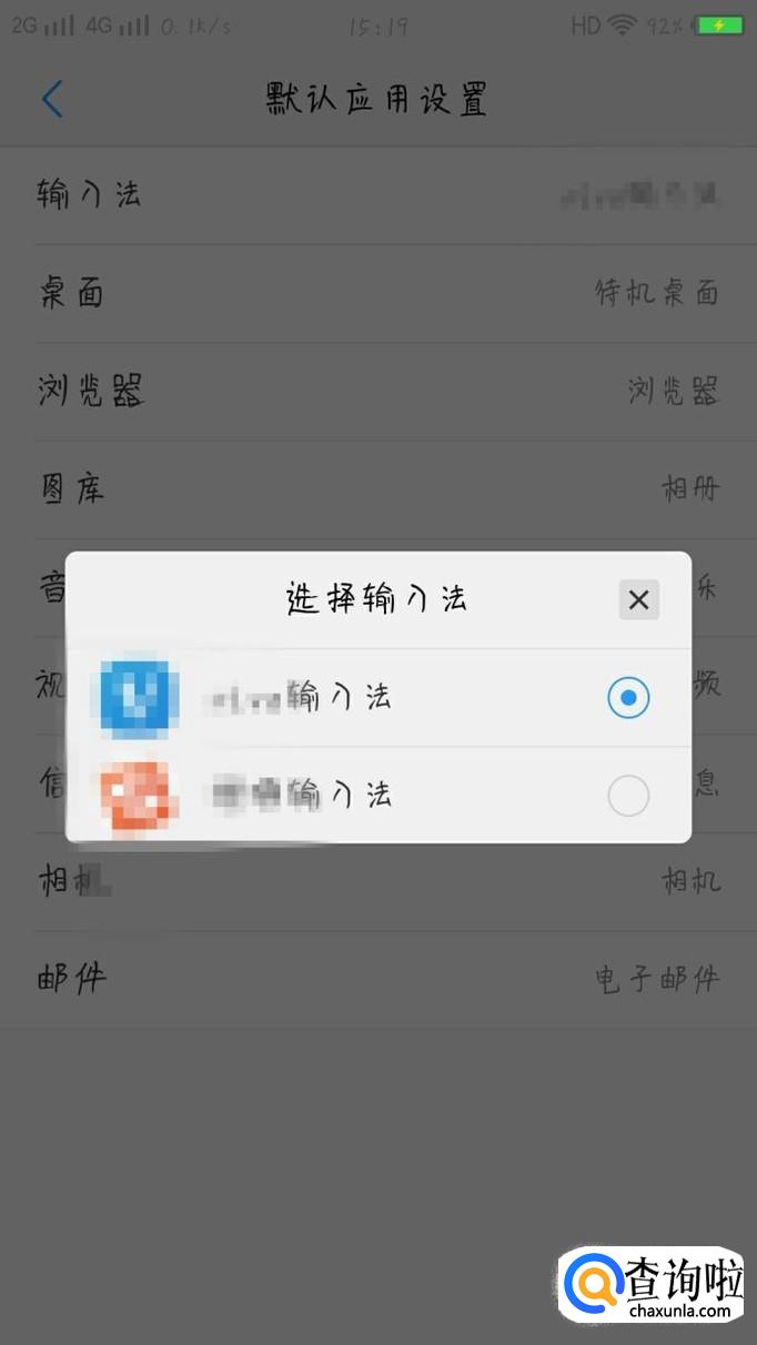 在默认应用程序页面,以输入法为例,点击输入法,即可更换其他输入法为默认输入法,如图所示。