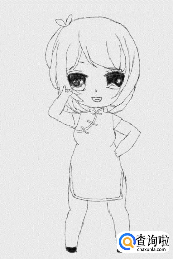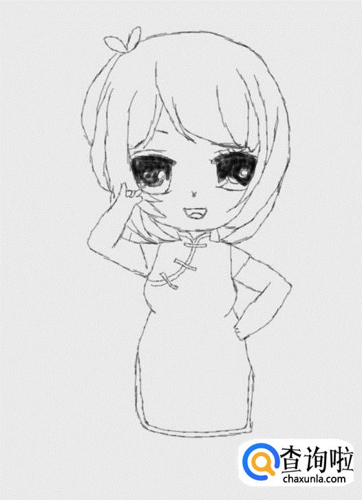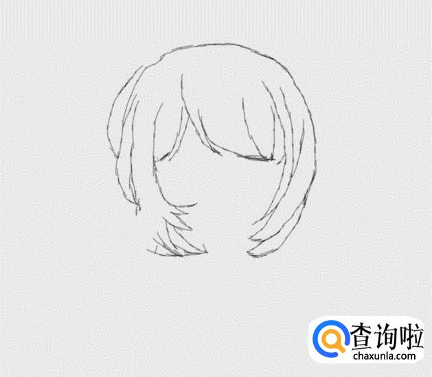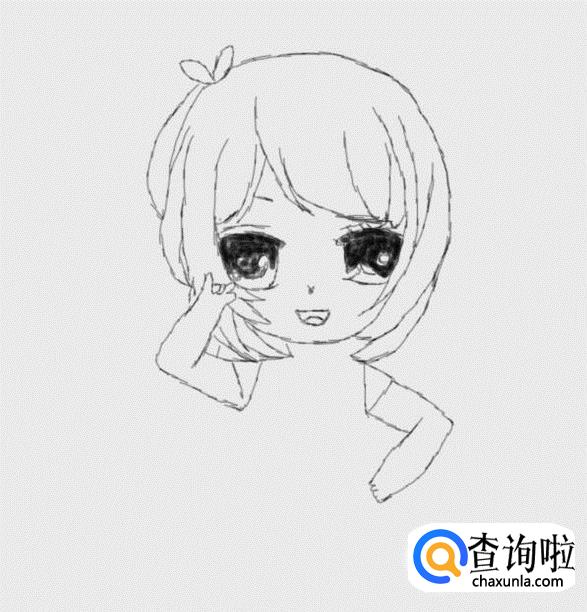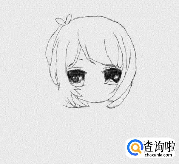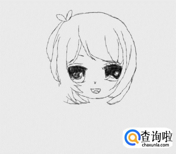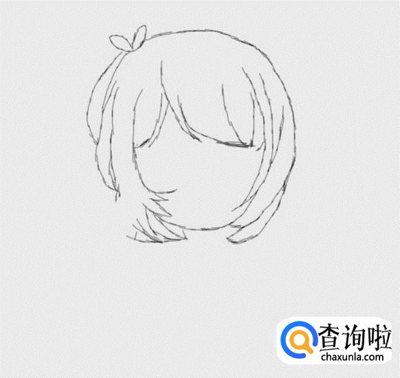 再在头发上画出一个蝴蝶结,然后再在头发的基础上再画出面部,如图所示: