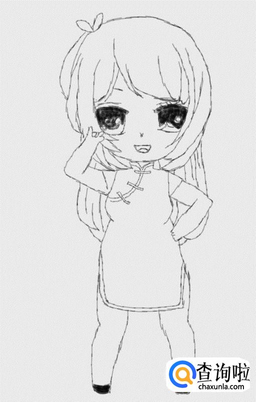 最后再在胳膊的下面画出下垂的头发,这样我们的奇迹暖暖就画好了,如图所示: