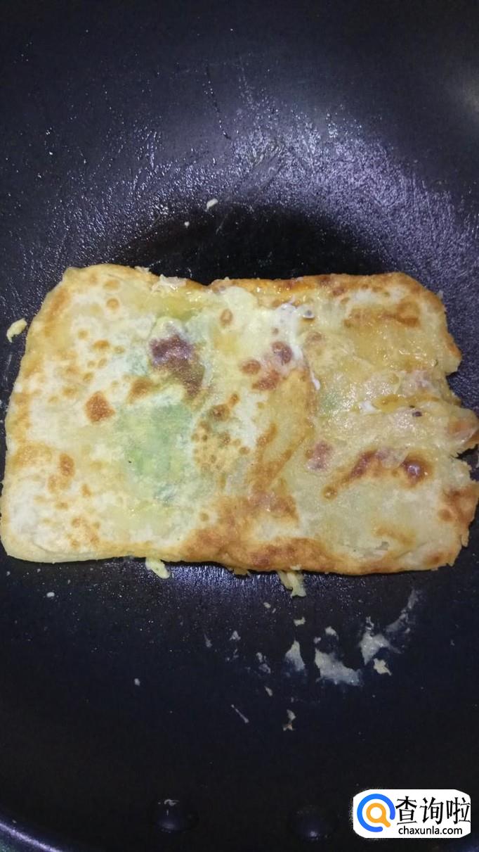 将韭菜鸡蛋饼煎至两面金黄,煎熟就可以了。
