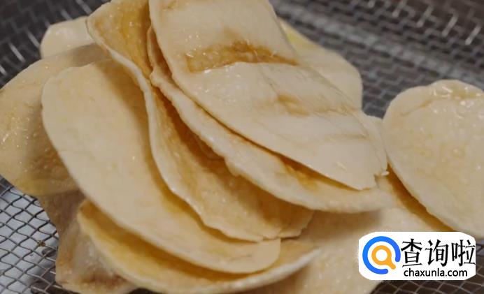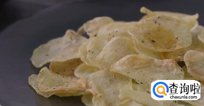 烘烤5分钟,等土豆片金黄卷边时,取出放凉,原味烤薯片就完成了。