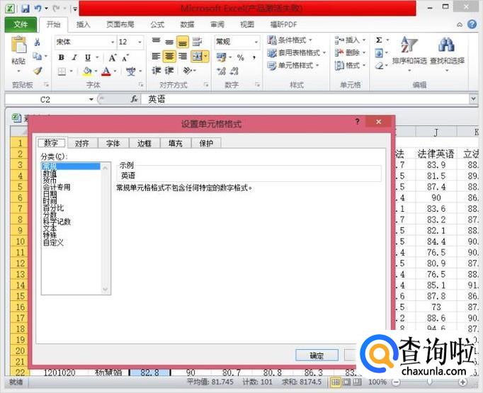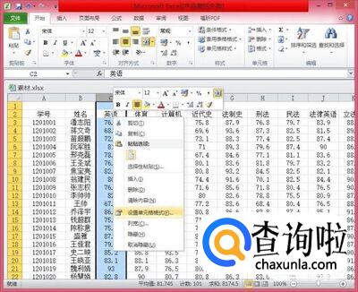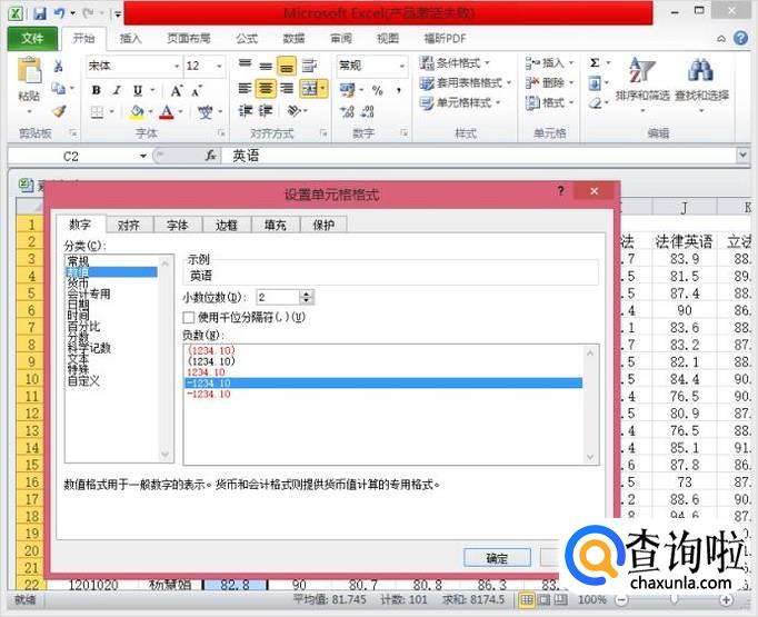 选择需要保留小数点后两位的所有列,我们以“英语”为例