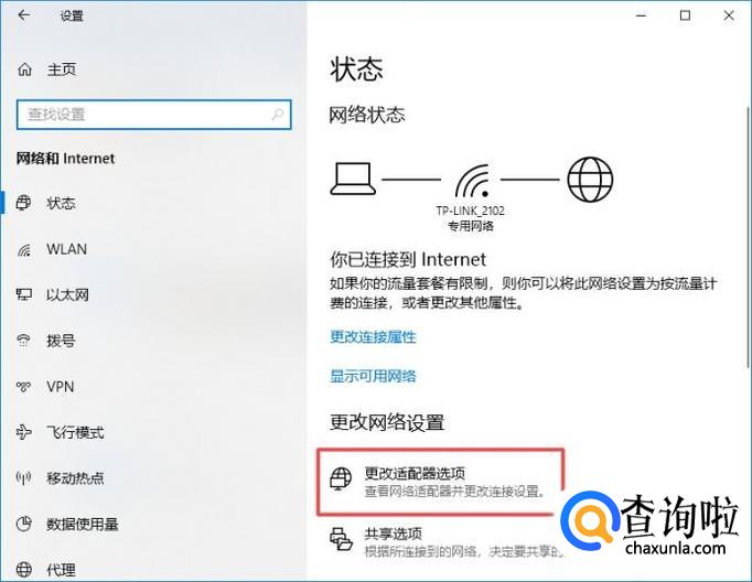 弹出的界面,我们点击更改适配器选项;