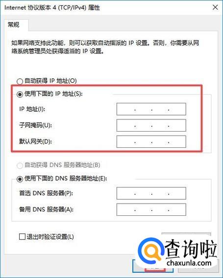 弹出的界面,如果里面有IP地址的话,我们也就看到了,我们想设置IP地址的话,在里面设置就行了,设置完成后,我们点击确定即可。