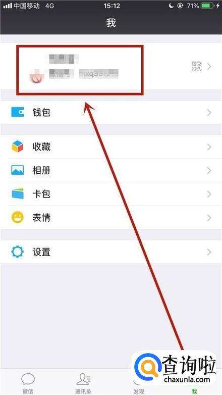 首先点击微信“我”菜单中的个人信息,如下图所示。