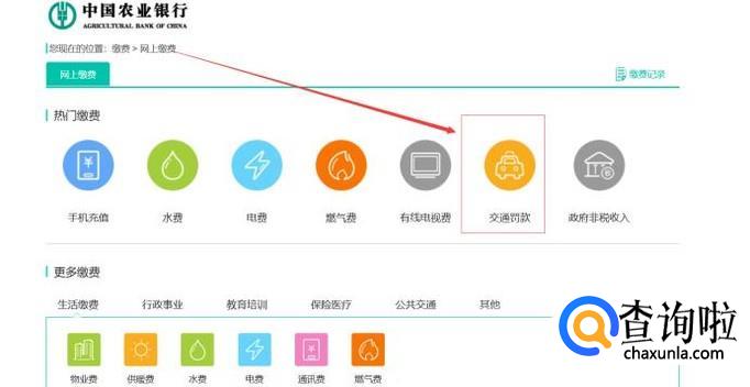如图点击”一键缴费“后在新弹出网页内找到“交通罚款”选项点击进入