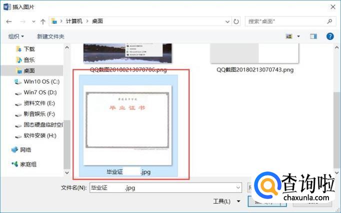 接下来,选择扫描之后的图片文件插入到Word文档中。