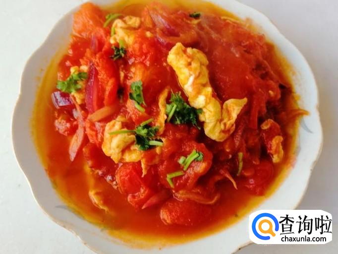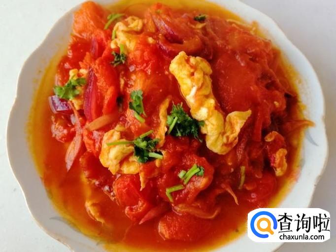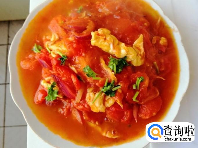 适量西红柿、葱花、香菜、圆葱、白糖、食盐,两个鸡蛋。
