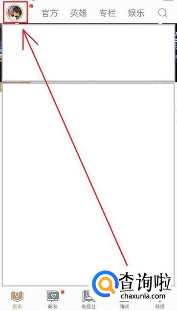 打开掌上英雄联盟使用QQ账号进行登录后,点击左上角的个人头像,进入“个人中心”。