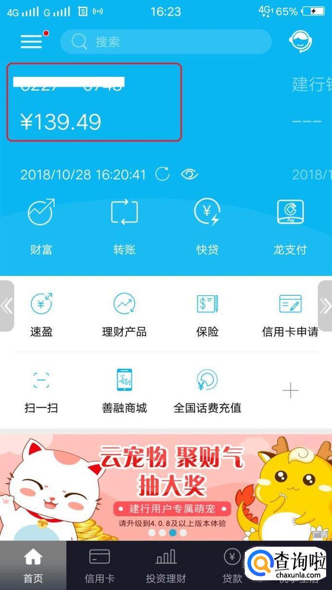 首先,我们打开建行手机银行,然后输入密码登录,进入个人的银行卡页面。我们点击一下账户。