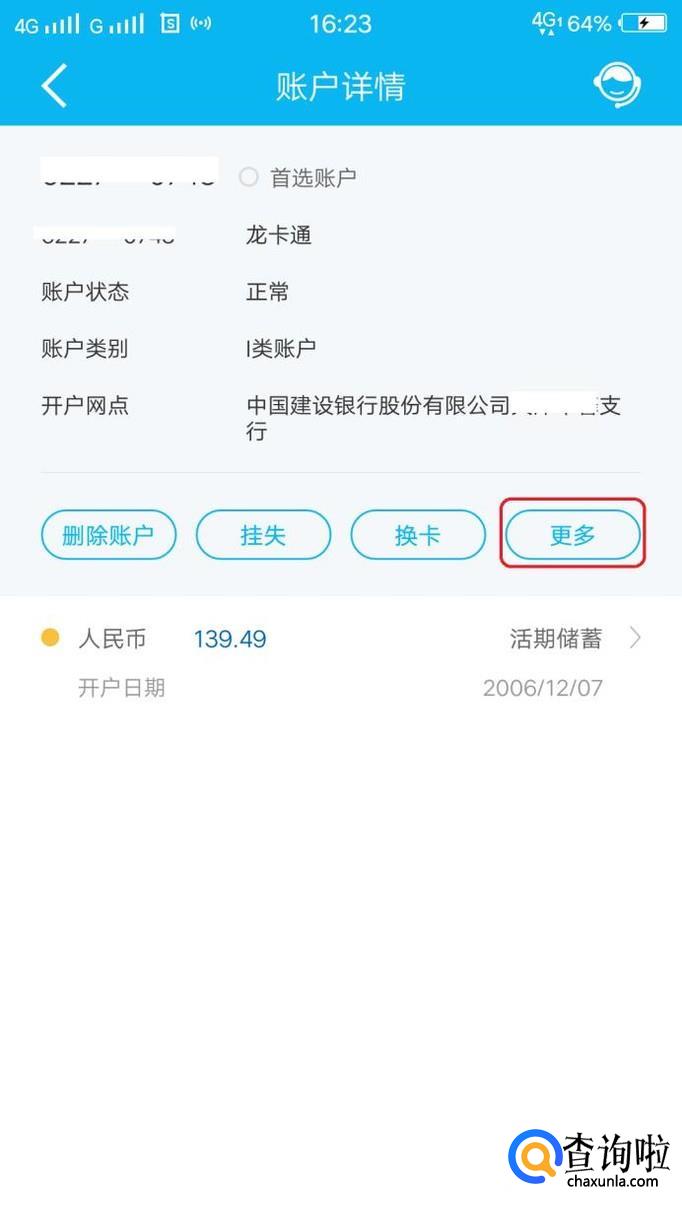 进入到了账户详情页,我们点击图中的“更多”,下方就会弹出浮动框,其中就有“小额免密设置”,我们点击一下。