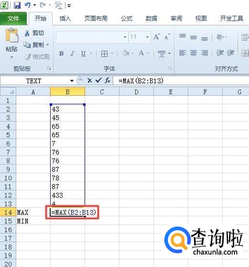 然后我们输入=MAX(B2:B13),之后我们按回车键;