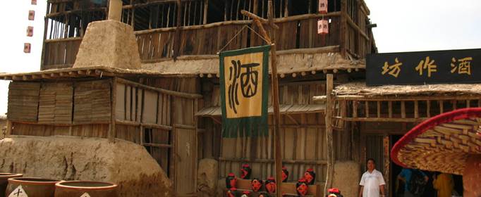 《初刻拍案惊奇》卷二十:“主家间壁是一座酒肆。”清朝蒲松龄《聊斋志异·酒狂》:“对门一酒肆,往来颇伙。这家唯一的酒肆没有招牌,只在门前插上两张一青一白的酒旗迎风招展着。”明朝冯梦龙《喻世明言》第一卷:“自家在酒肆中吃了三杯,用了些点心,又到薛婆门首打听,只是未回。”
