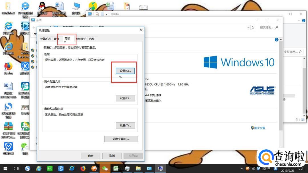 然后在系统属性窗口中,点击“高级”,再点击“设置”,如下图所示。