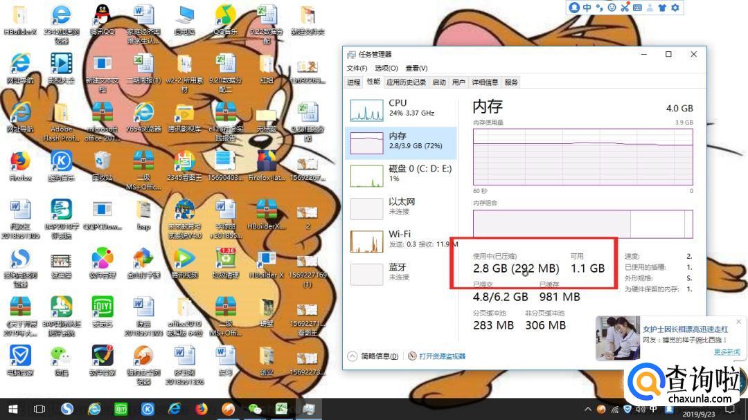 当我继续再打开另外一些程序的话,可用内存会越小,然后系统的反应也会越来越慢。