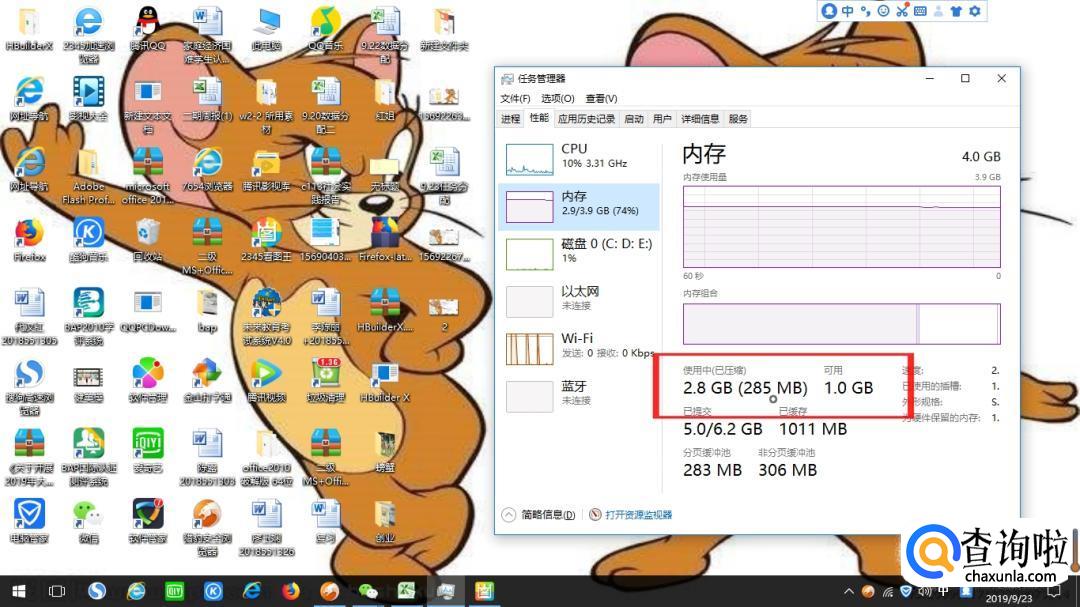 我们再回到任务管理器中的“性能”中查看当前可用内存,就会发现系统的可用内存比原来要多了,如下图所示