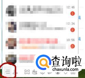 我们打开QQ,点击左下角的三个横杠图标。