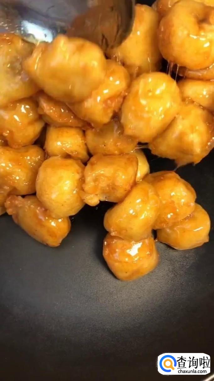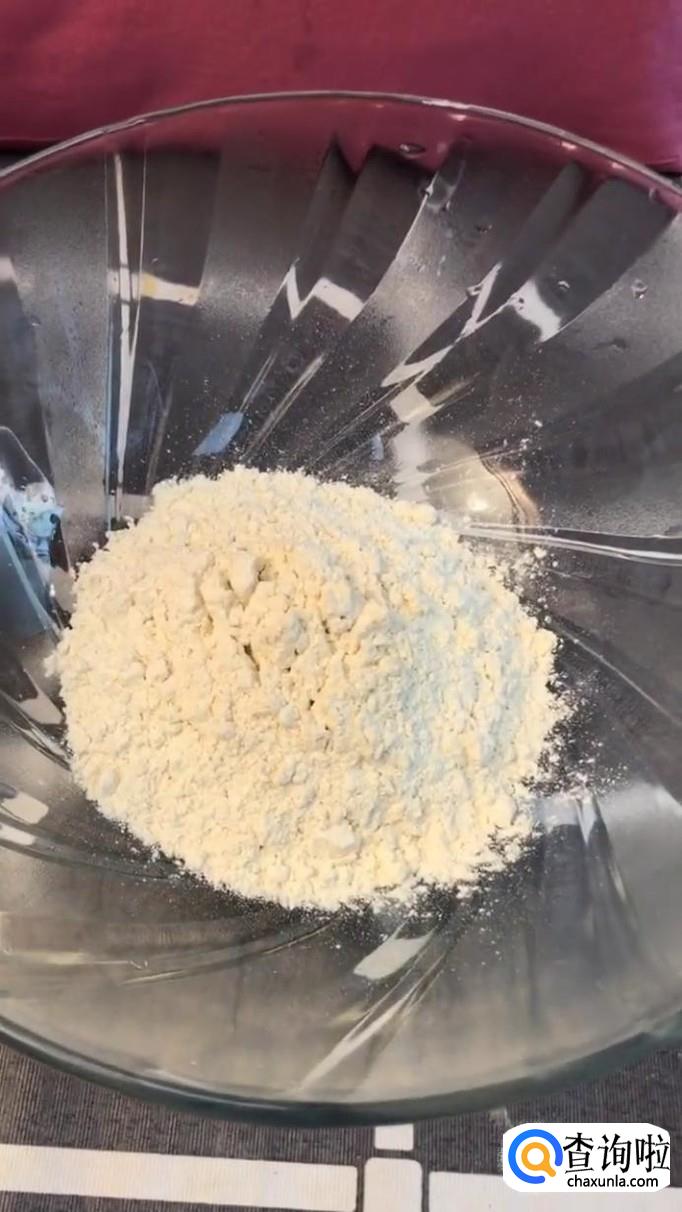 接着往碗中加入适量的油炸粉,如下图所示。