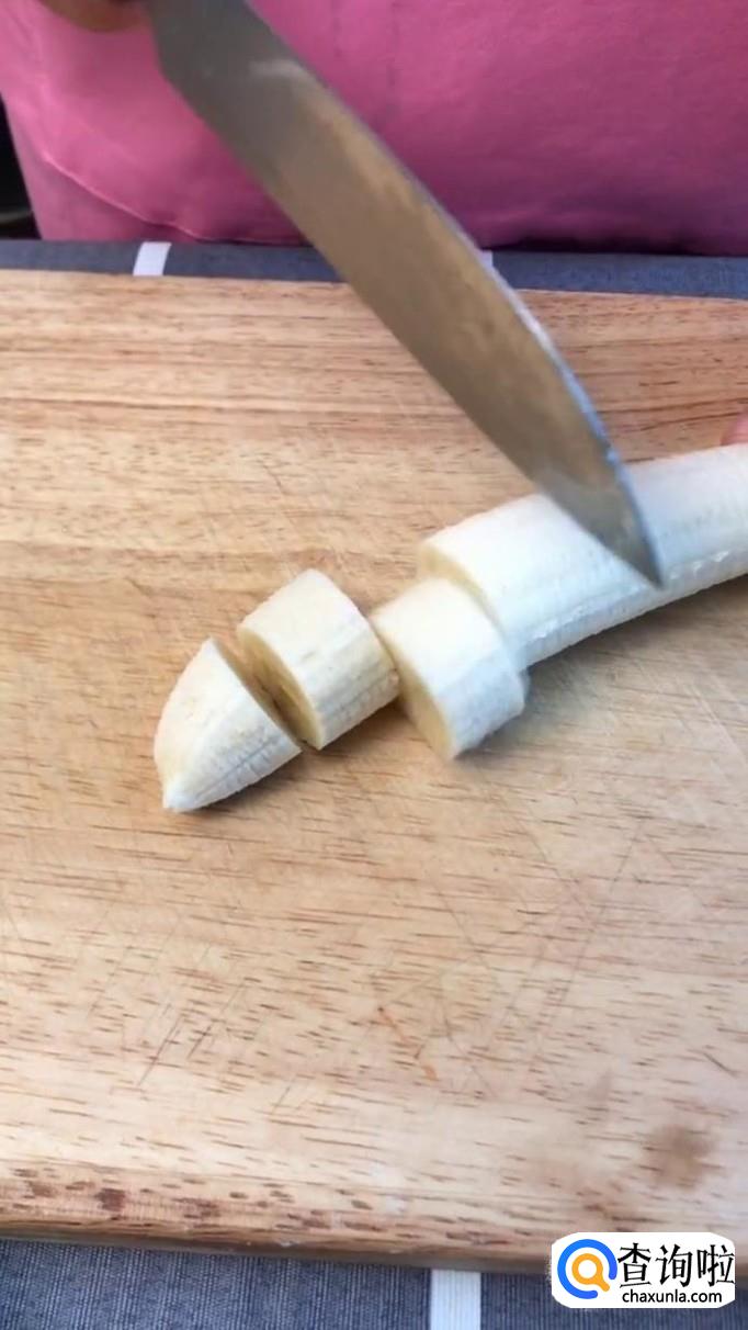 然后将剥好的香蕉切成段,如下图所示。