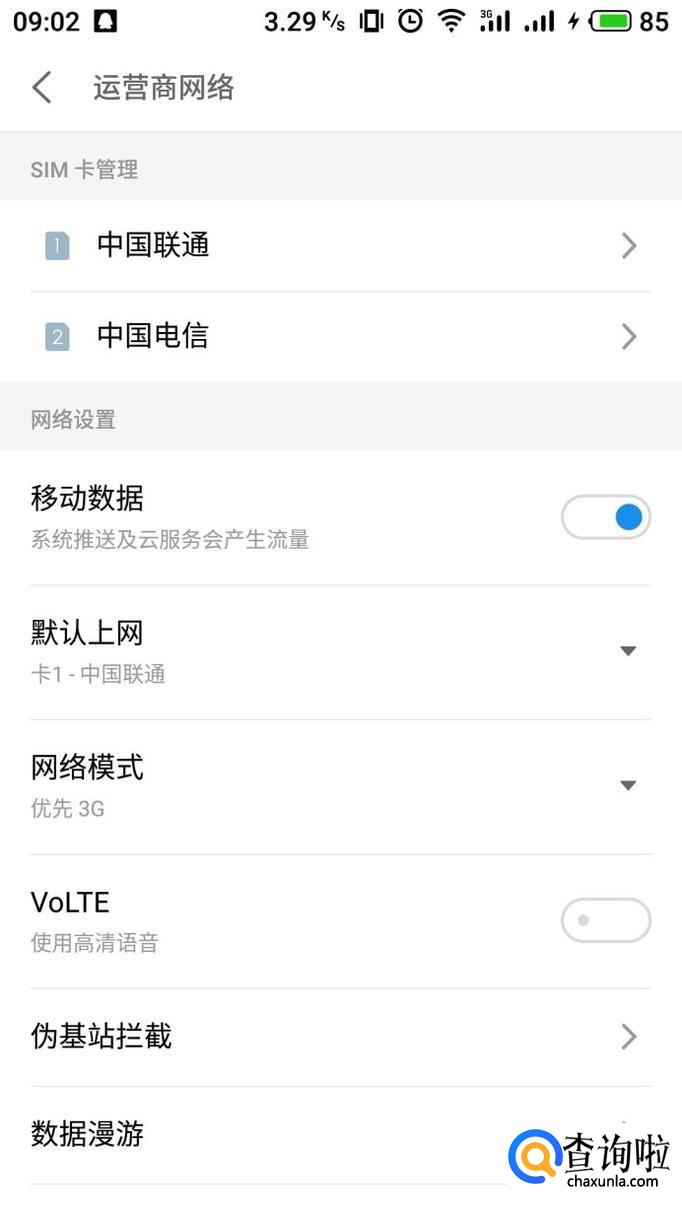 进入运营商网络界面,在网络设置中点击“网络模式”