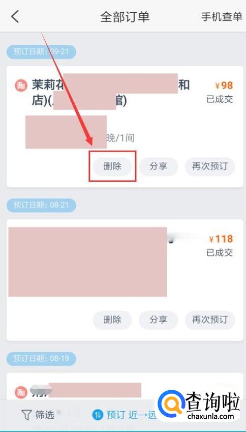 点击进入“全部订单”,找到要删除的那个订单,点击“删除”按钮。