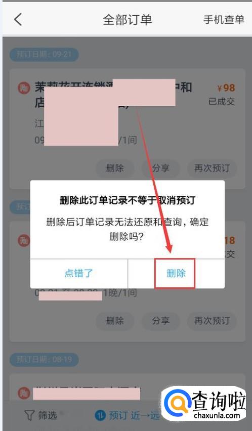 在弹窗中点击“删除”,该订单记录就会被删除掉了。