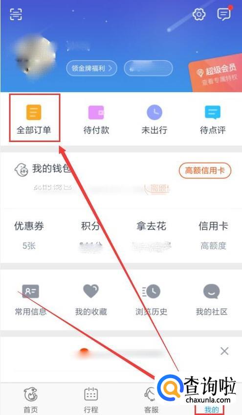 点击底部“我的”按钮,在该界面找到“全部订单”。