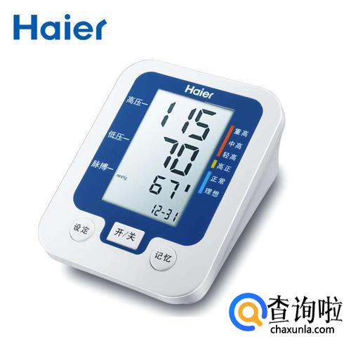 海尔血压计。是全自动的,应用集成技术IHD的臂式血压计。他利用震荡的原理能够快速而准确地测量收缩压,舒张压及心率。