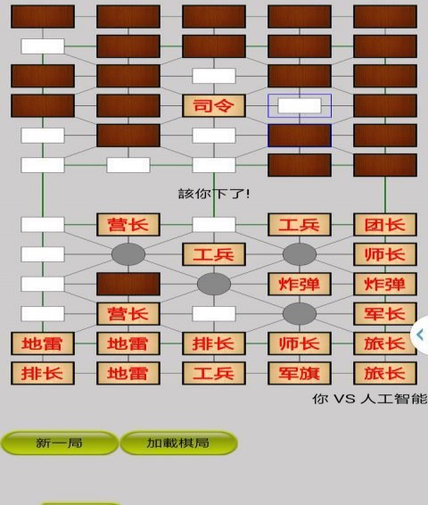 炸弹不能放在第一行,地雷只能放在最后两行,军旗只能放在大本营。