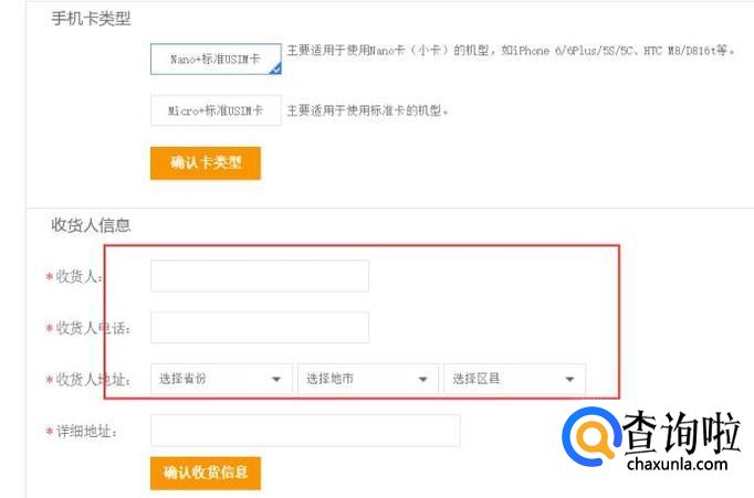 接下来,选择好SIM卡类型和收货人姓名、地址和联系方式等信息,单击“确认收货信息”按钮之后即可提交成功,然后就等着快递送上门吧。
