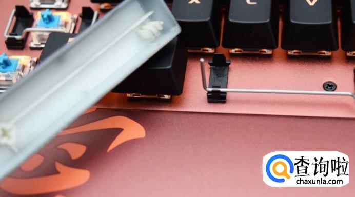 接下来就可以安装空格键,先把钢丝单独扣进空格键的键帽里。