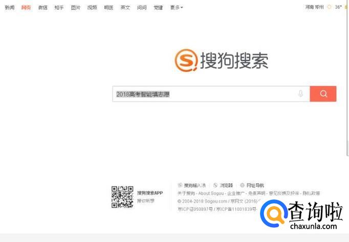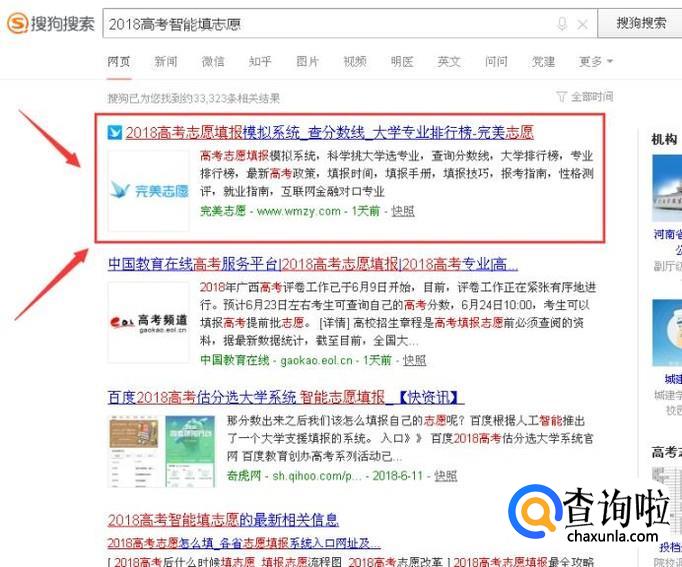 首先在搜狗搜索中输入“2018高考智能填志愿”,点击搜索,进入官网。