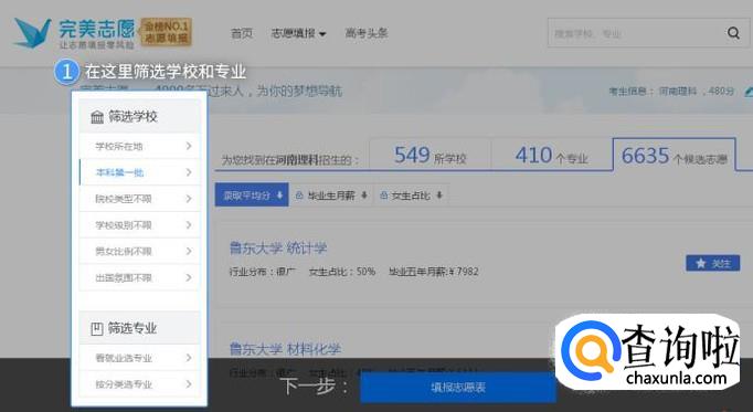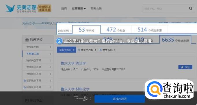 例如点开“推荐志愿”,之后就可以根据智能推荐的学校,填报自己喜欢的学校了。