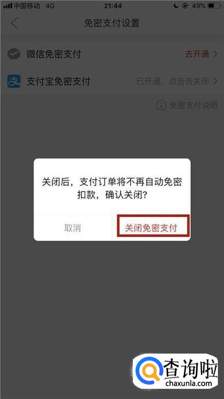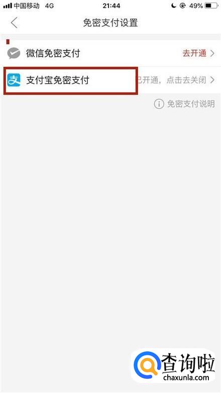 接着点击一个要关闭的免密支付的方式,如下图所示。
