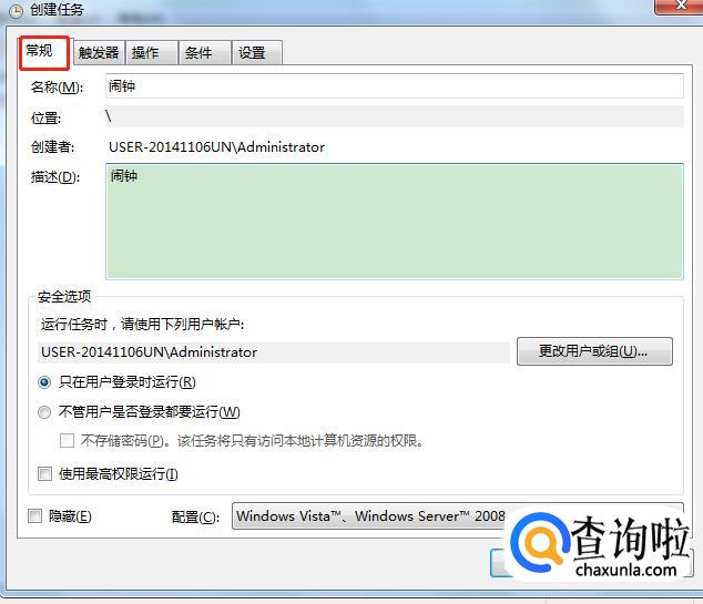 在弹出基本任务创建界面上选择“常规”,在下面填写的“名称”和“描述”,然后点击确定。如图所示。