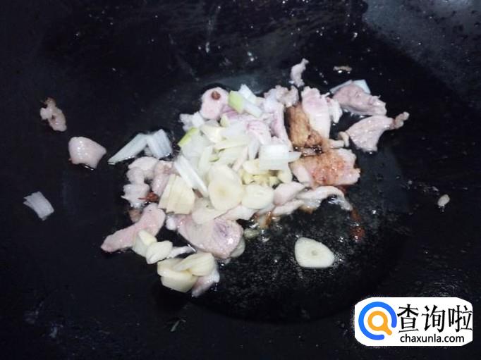 猪肉用水冲洗干净,控干水分,切成片。切好葱,姜,蒜备用。