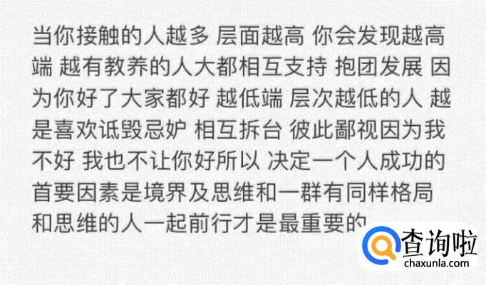格局。要有格局,看问题长远,想问题深入,交友更是要谨慎,有格局,才能走的更远。