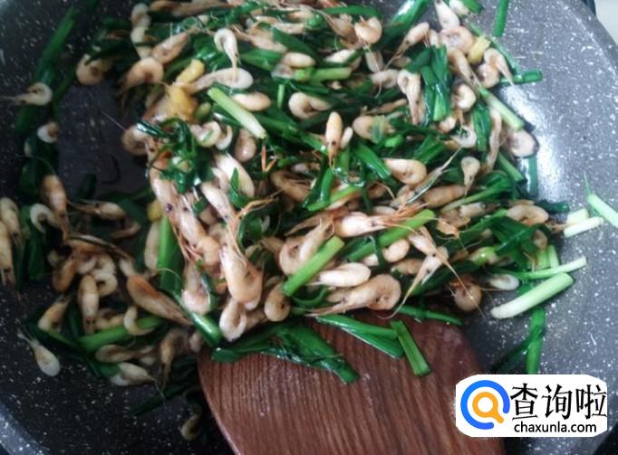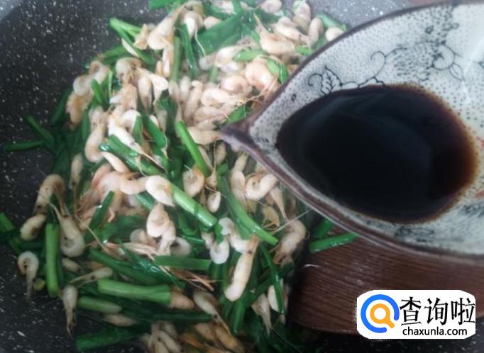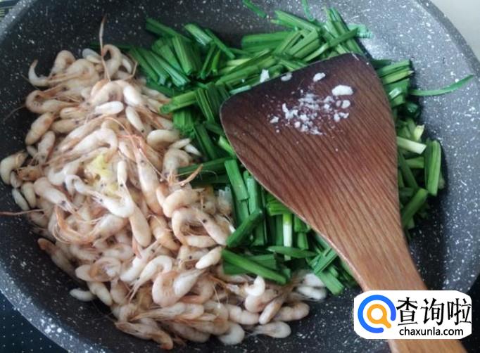 小虾200克,韭菜100克,姜蓉适量,1勺生抽。