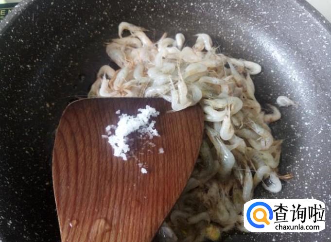 虾子下锅,加适量的盐翻炒至变色。